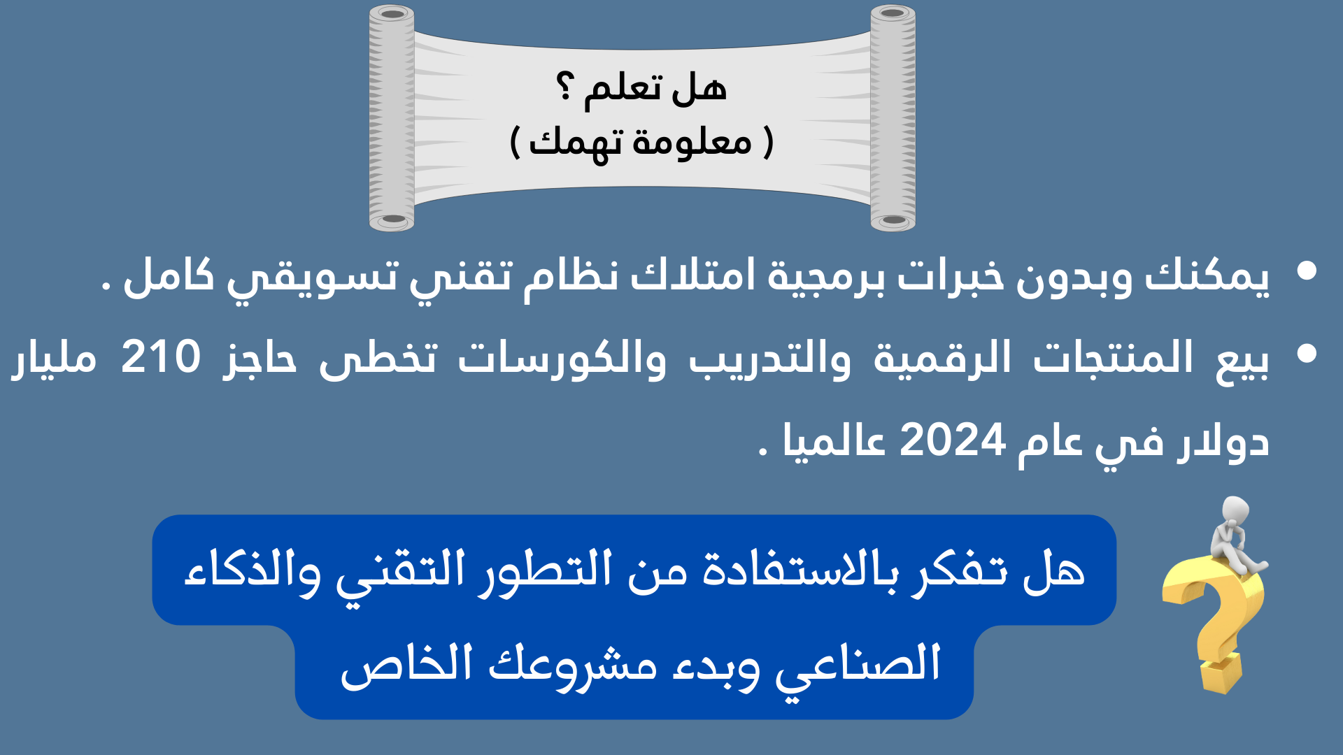 لديك نظام تقني وتسويقي آلي يعمل بدلا عنك ويوفر عليك الوقت والجهد